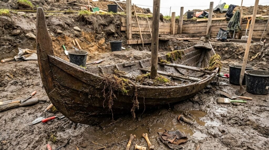 Barquinho viking de madeira de mil anos reaparece em poço na Noruega, expõe a infância medieval em Ørland e reforça a importância das escavações da NTNU