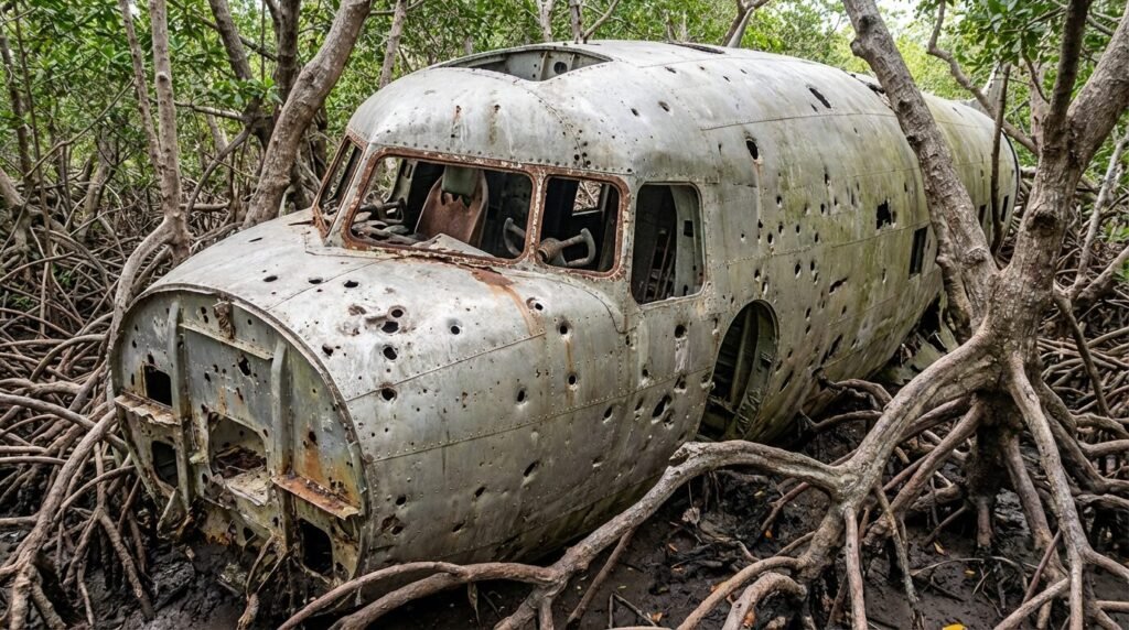 O caso remonta a 1966, quando o avião caiu perto da costa. O local, envolto por lama e raízes, manteve o casco praticamente oculto por anos. O achado só ocorreu 13 anos depois, o que ampliou o mistério sobre o que teria acontecido ali.